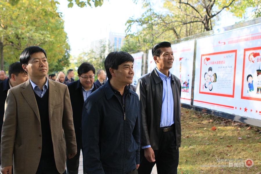 与会人员兴致勃勃地实地参观了我校的育人环境、观摩了古典音乐教学示范课、大学生艺术团龙狮教学课,系统了解了我校着力打造的精神文明创建数字管理新高地——精神文明创建网络动态管理系统。在欣赏了美术与艺术设计学院服务地方的创新创业文化作品展、外国人眼中的365bet平台注册摄影展、教育学院“师艺风”师范生技能素质作品展、美术与艺术设计学院“社会主义核心价值观公益招贴”学生设计作品展后,参观了学校文明校园创建专题展厅,并观看了我校文明校园创建纪录片《文明的足迹》。