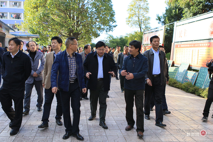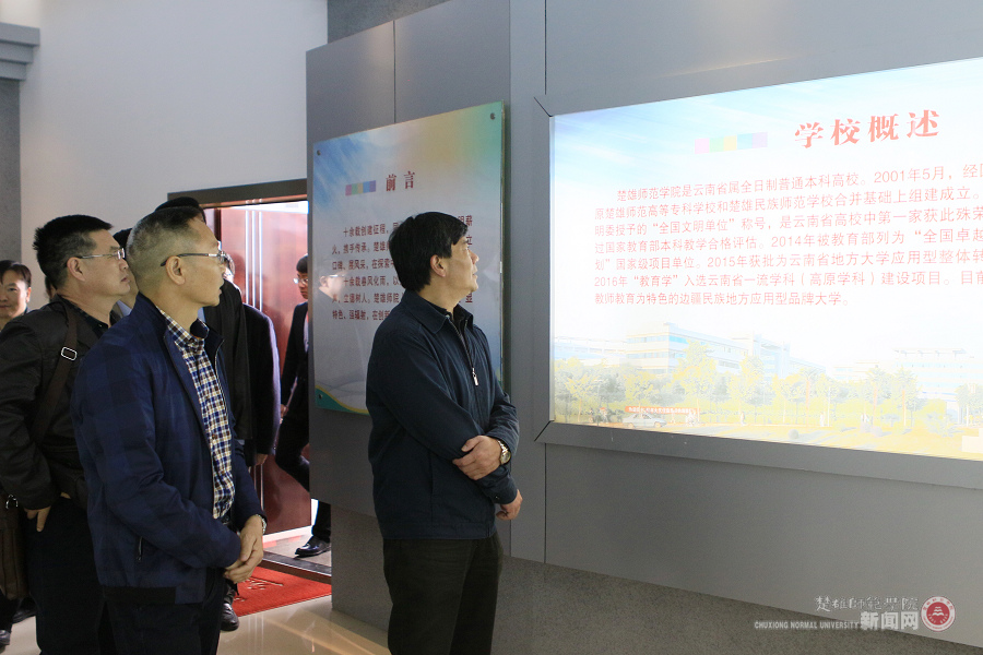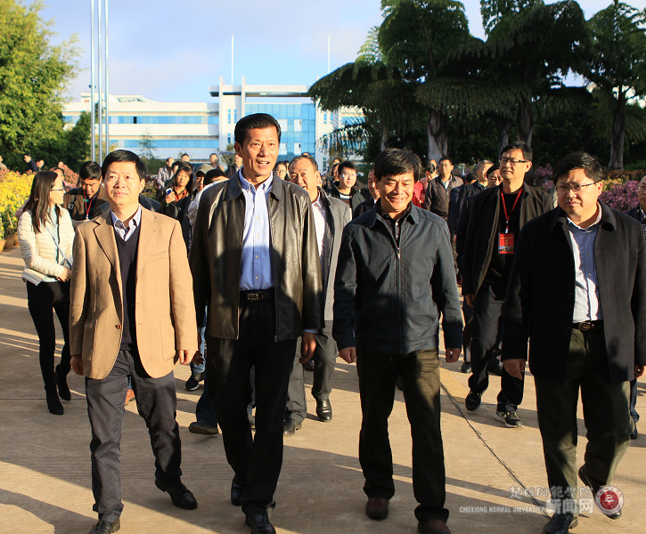 11月21日上午,全省文明校园创建工作推进会在楚雄召开,参加会议的云南省文明办专职副主任李联斌,中共云南省委高校工委委员、云南省教育厅党组成员、云南省招生考试院党委书记王永全,楚雄州委副书记彭志远等省、州、市领导及与会人员100余人莅临我校参观指导全国文明校园创建工作。校党委书记张劲松、校长罗明东、校党委副书记、校文明委主任李德勇,校党委副书记杨顺清,副校长、校文明委副主任李勇以及党办、校办、校文明办等负责人陪同参观。