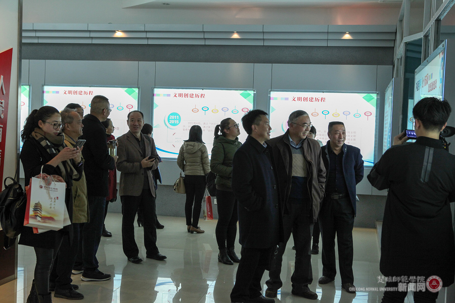 “手拉手”第八组8所共建学校云南警官学院、云南大学旅游文化学院、德宏师范高等专科学校、德宏职业学院、楚雄医药高等专科学校、云南现代职业技术学院、楚雄技师学院的思政部教师60余人参加了开幕式及共建活动,并集体参观了我校文明校园创建成果展厅。