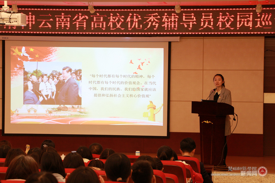 宣讲会上,云南财经大学舒挺老师、云南民族大学李文星老师、云南经济管理学院唐贵宏老师、云南师范大学杜敏菊老师、昆明冶金高等专科学校纳佳老师等五位优秀辅导员依次上台宣讲,整个活动深入浅出、主题鲜明、语言生动,对党的十九大精神理解透彻,把握精准;通过具体的实例、接地气的语言使得宣讲报告更贴近大学生实际,极富说服力和感召力。