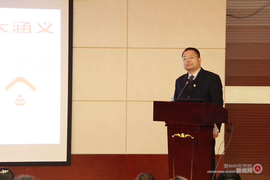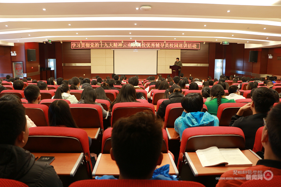 12月27日14:30,由中共云南省委高校工委主办,8所云南省高校辅导员发展研究中心承办,全省各高校协办的“学习宣传贯彻党的十九大精神——云南省高校优秀辅导员巡讲和网络巡礼活动”校园巡讲第二报告团楚雄站的报告会在我校文鼎楼第一报告厅举行。楚雄医药高等专科学校、我校13个二级学院的优秀辅导员和学生代表参加了巡讲会。学校副校长李勇出席报告会并致辞。报告会由学生工作部部长朱元富主持。