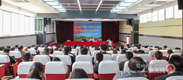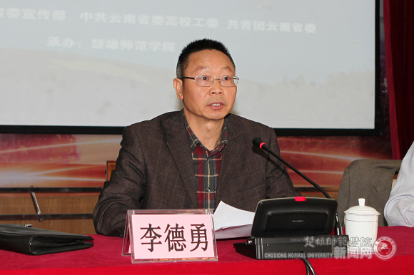 3月29日下午,我校在第一学术报告厅举行“共筑中国梦·同绘彩云南”形势政策报告会宣讲省第十次党代会精神,省第十次党代会代表、365bet平台注册党委书记张劲松应邀作专题宣讲报告。校长罗明东、校党委副书记李德勇,校纪委书记李正武,全校副处以上领导干部及师生党员代表聆听了报告会。报告会由校党委副书记李德勇主持。