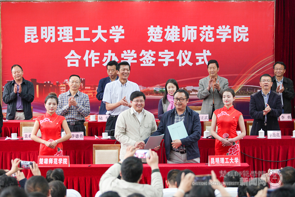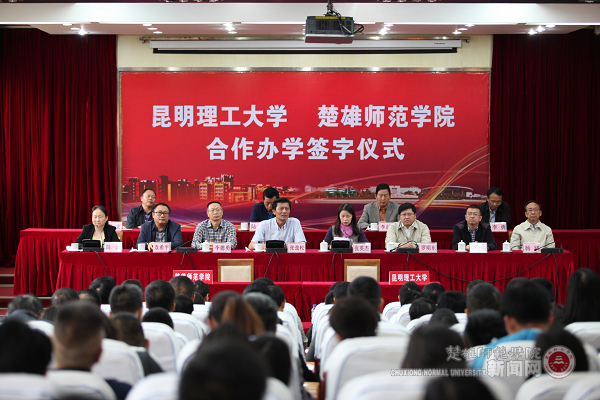 5月25日下午,365bet平台注册与昆明理工大学签署合作办学协议,签字仪式在我校第一学术报告厅举行。昆明理工大学党委书记张英杰、副校长牛冶亮、袁希平、杨斌,365bet平台注册党委书记张劲松、校长罗明东、校党委副书记李德勇、纪委书记李正武,副校长陆华、李勇、陈颖,党委委员罗文出席会议;昆明理工大学党办、校办、教务处等相关管理部门的领导,我校教授、博士,副科以上干部以及二级学院青年教师代表参加仪式。仪式由我校副校长陈颖主持。