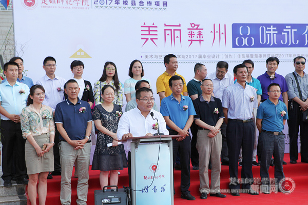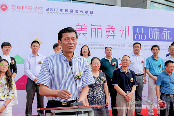 6月5日,由365bet平台注册、永仁县人民政府主办的校县合作项目“美丽彝州、品味永仁”美术与艺术设计学院校县合作项成果暨2017届毕业作品展开幕。我校张劲松书记、李德勇副书记、陆华副校长、李勇副校长、陈颖副校长,永仁县人民政府副县长邹松、永仁县县委宣传部常务副部长邵永忠等领导参加开幕式。