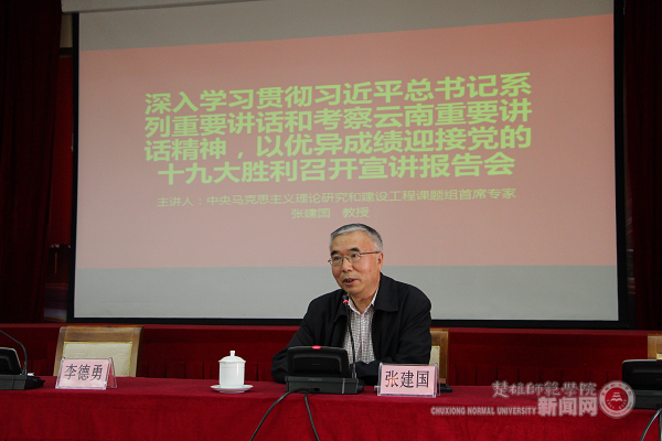 李德勇副书记在报告总结中指出,张建国教授的宣讲报告,主题鲜明、内容丰富、观点独到,蕴意深刻,理论阐释精彩、案例分析生动,对广大干部、教职员工和学生进一步深刻理解习近平总书记系列重要讲话和考察云南重要讲话所蕴含的重大政治意义、理论内涵、精神实质、实践要求,有很大帮助;对进一步准确把握习近平总书记系列重要讲话和考察云南重要讲话精神贯穿其中的马克思主义立场、观点、方法,有极大启发。李副书记要求各位师生要在张教授的宣讲辅导下,自觉加强对习近平总书记系列重要讲话和考察云南重要讲话精神的学习,并以此为科学指引,结合自身的岗位、职责和使命,增强学习、工作的科学性、预见性、主动性、创造性,以优异成绩迎接党的十九大胜利召开。