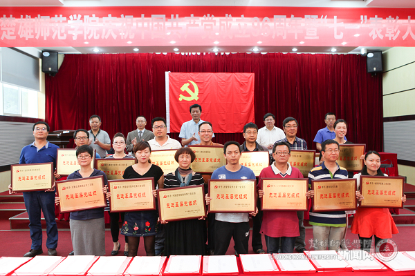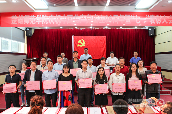 校党委副书记李德勇宣读了《关于表彰“先进基层党组织”和优秀共产党员、优秀党务工作者的决定》(楚师党字〔2017〕55号),校领导为15个先进基层党组织、15名优秀党务工作者和60名优秀共产党员颁奖。