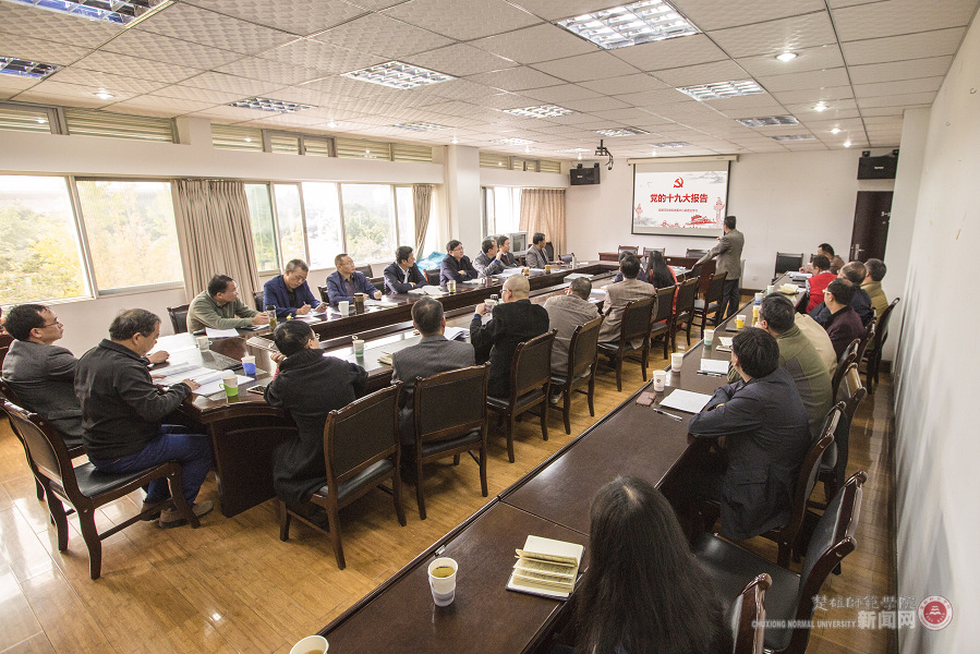 11月2日,学校党委召开中心组理论学习扩大会议专题学习十九大精神。学校党委书记张劲松,党委副书记、校长罗明东,党委副书记李德勇、杨顺清,纪委书记李正武,副校长陆华、谢志林、李勇,党委委员罗文、曹晓宏和学校职能部门负责人以及各二级党委(党总支)书记在行政楼第四会议室集中学习并交流发言。