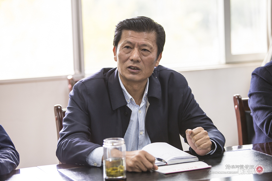 中心发言人罗明东校长表态坚决维护以习近平同志为核心的党中央领导,坚决在行动上思想上与党中央保持高度一致;结合我校当前办学实际,强调深入学习党的十九大报告精神的重要性;在十九大精神指引下,把握未来高等教育发展趋势,看清其大势,把握其本质,抓好其节点,将学校的发展积极融入国家发展战略;并围绕边疆少数民族地方院校应用型转型发展问题,深入挖掘发扬我校师范教育的传统优势,准确定位,科学谋划,做实做牢师范教育的基础性工作,进一步夯实和提高我校在民族地区师范教育的地位。