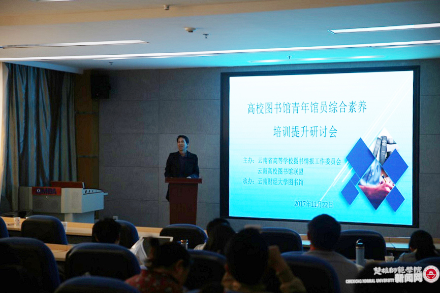 2017年11月22日,由云南高校图工委组织的“高校图书馆青年馆员综合素养培训提升研讨会”,在云南财经大学举行,我校图书馆部分青年馆员与全省各高校图书馆馆员共一百多人参加了会议。